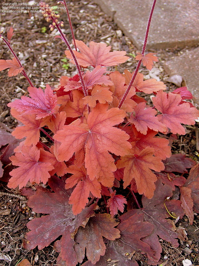 Рассада гейхеры Свит Ти (Sweet Tea) обладает завораживающими листьями похожими по форме на кленовый. Цветовая гамма листвы разнообразная от оранжевого до коричнево-бордового цвета. Особенно привлекательно выглядит контраст красок куста поздним летом и осенью. Старые листья становятся насыщенно-коричневого цвета, а молодые оранжевого. Достоинства: