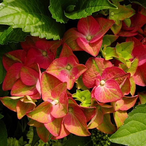 Гортензия крупнолистовая "Грин Шадоу" - это великолепное растение с темно-красными цветками, украшенными зелеными оттенками. Ее ярко-зеленая листва радует глаз как весной, так и осенью. Сорт отличается диаметром до 25 см и формой листьев, которая придает растению особый шарм. Гортензия предпочитает солнечные и полутенистые места для посадки, а также дренированные богатые почвы.