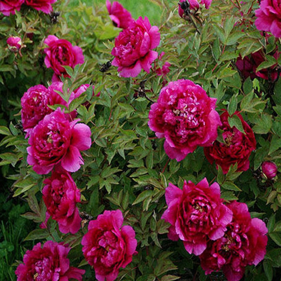 Этот сорт цветка обладает пурпурно-красными цветами дракона, размером до 16 см, что придает им особую загадочность и магию. Пион древовидный цветы дракона предпочитает солнечные места и дренированные богатые почвы. Для его процветания рекомендуется групповая посадка.