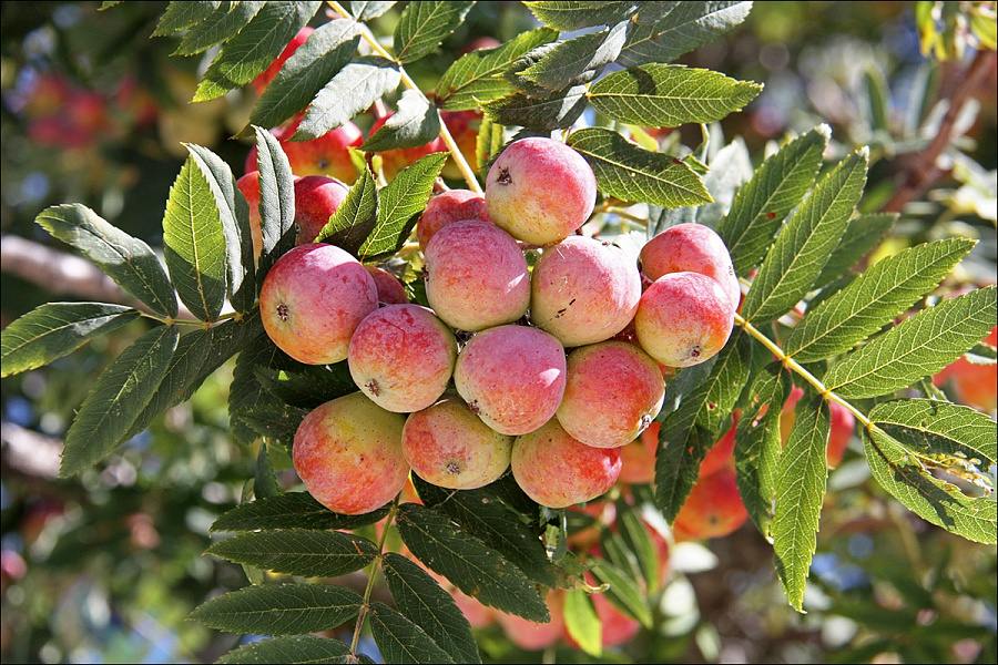 Рябину лучше высаживать на границе участка, ведь она достаточно высокая. Цветы у этого вида поваляется позже, чем у других сортов. Ягоды довольно крупные – сантиметр в диаметре. Их особенно ценят в кулинарии. Оранжевая мякоть кисловатая со сладким шлейфом. Красные ягоды служат не только как вкусный урожай, но и хорошо украшают сад.